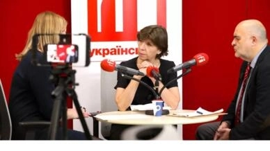 Ngoại trưởng Pháp Catherine Colonna (G) trả lời phỏng vấn RFI Tiếng Ukraina và RFI Tiếng Rumanie, Bucarest, Rumanie, ngày 27/01/2023. © RFI