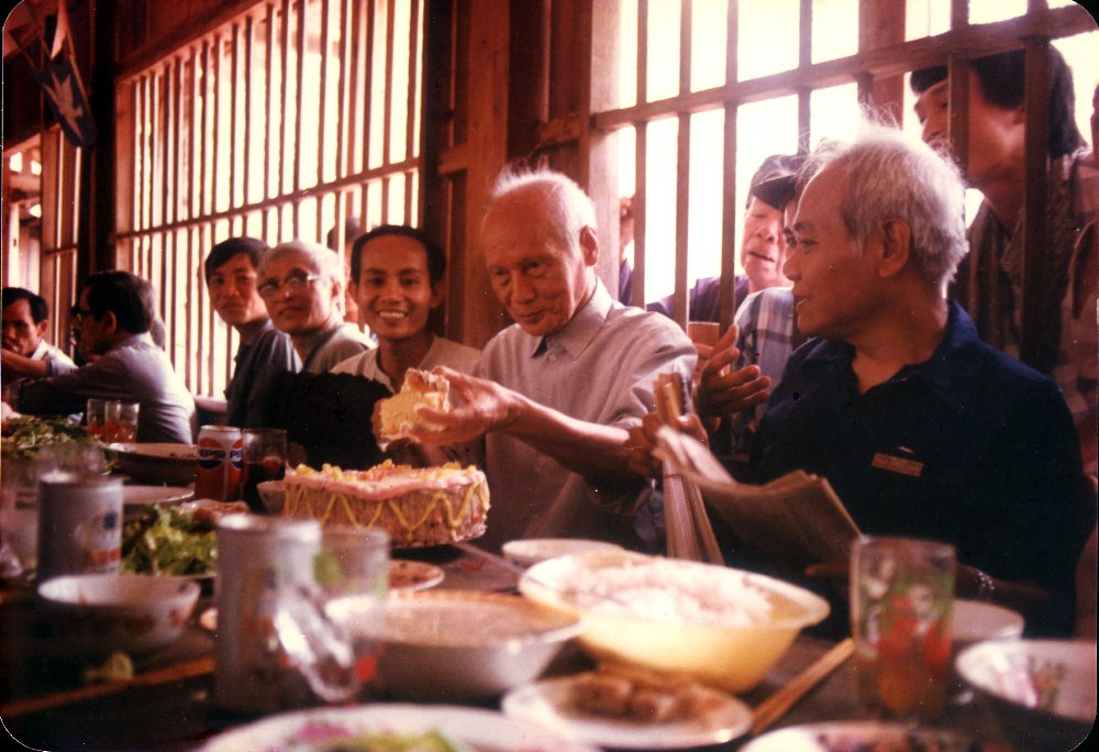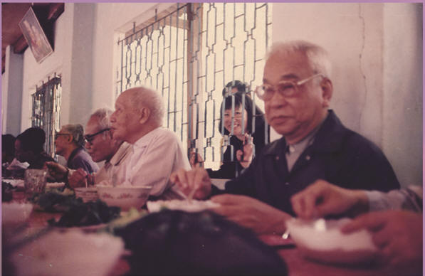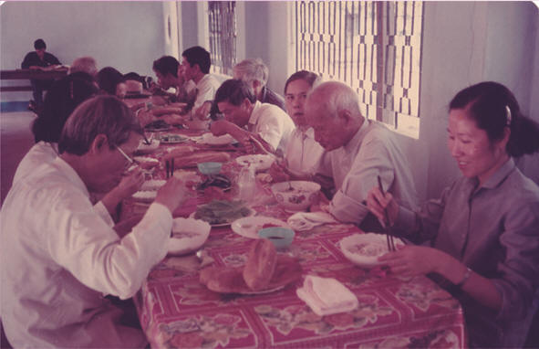 Ngày 14 tháng 12/1992, Anh Cả dùng bữa với phai đoàn các chị Trinh Vương (hình phải)