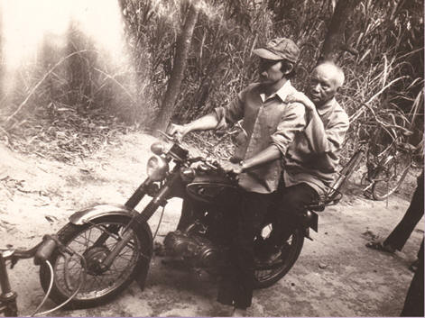 Hình trái: Anh Lm Nguyễn Hiến Tân đến thăm các tổ của anh em; Hình phải: Aa. Nghị và Thức ở Trại tù Xuân Phước Tuy Hòa năm 1993 được anh em dòng thăm nuôi bằng Honda vượt qua 600 cây số