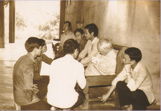 Trong hình trên đây: Anh Bonifasio M. Hoàng Thiện Giản LK III ngồi dựa lưng vào tường song cửa, ngay bên Anh Cả (đang chống tay dưới cằm),