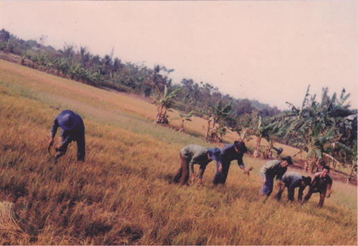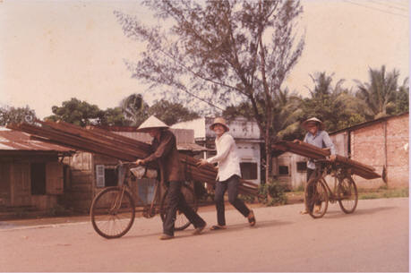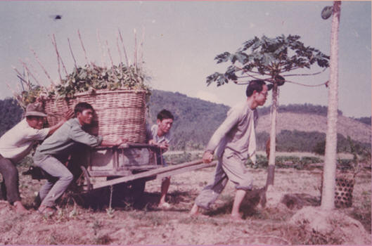 Hình phải: Anh Mai Hữu Nghị (Lớp khấn III, Tổng Phụ Tá 4) đang kéo xe nông sản từ rẫy về Trại tù Xuân Phước (A 20)