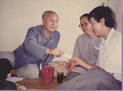 Hình phải: Sáng ngày 16/5/1987, Anh Cả xem lại Nghị quyết về Tôn giáo của Nhà nước.
