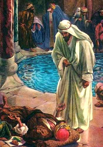 Đó là lý do, "có một người nằm đau liệt đã ba mươi tám năm" đã trần tình cùng "Chúa Giêsu", Đấng bấy giờ đã "thấy người ấy nằm đó và biết anh đã đau từ lâu, liền hỏi: 'Anh muốn được lành bệnh không?'", và đã than thở với Người về hoàn cảnh nuôi hy vọng trong thất vọng và tuyệt vọng của anh ta như sau: "Thưa Ngài, tôi không được ai đem xuống hồ, mỗi khi nước động. Khi tôi lết tới, thì có người xuống trước tôi rồi".